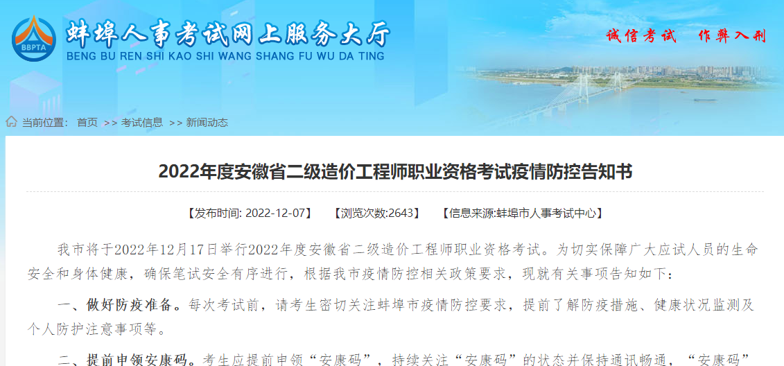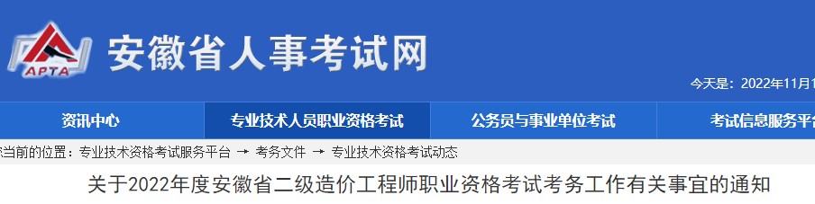 关于2024年度安徽省二级造价工程师职业资格考试考务工作的通知