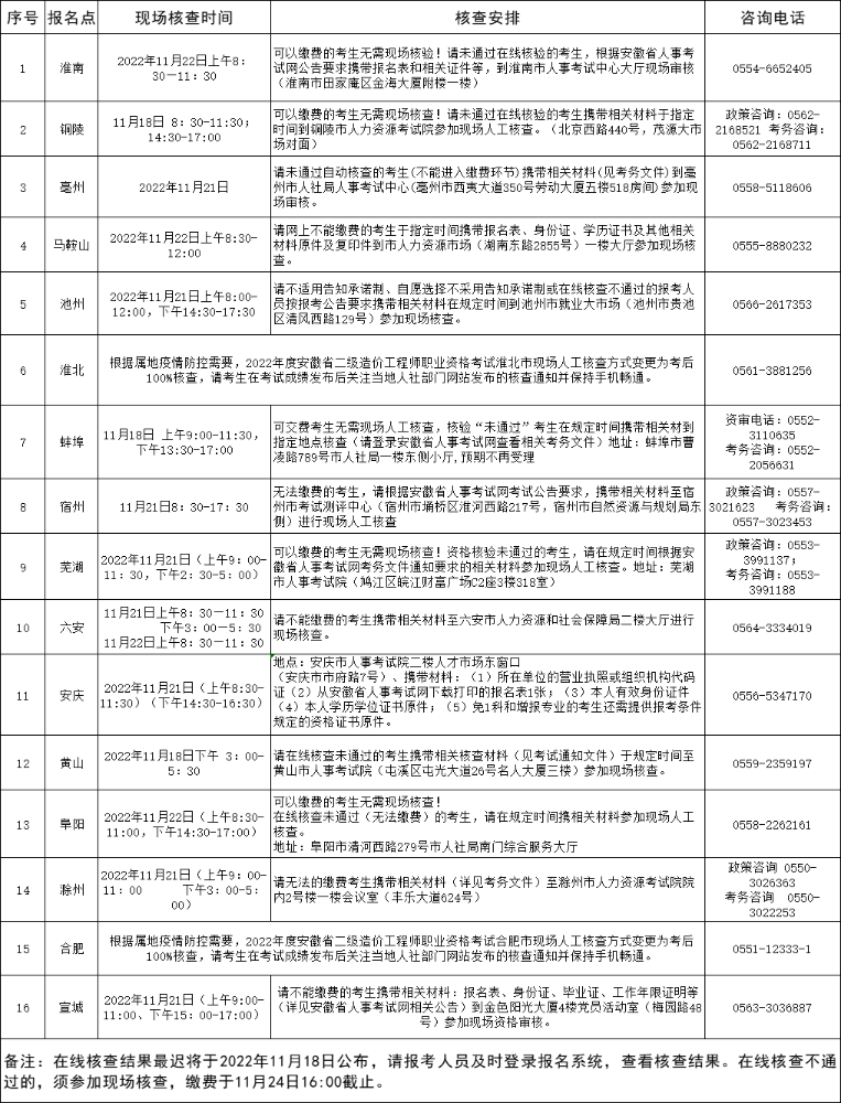 2024年度安徽省二级造价工程师职业资格考试现场人工核查安排