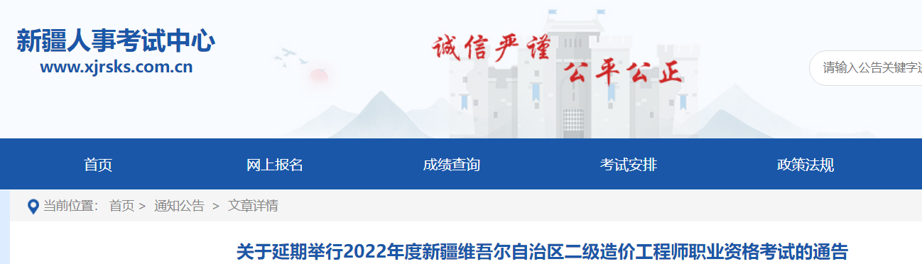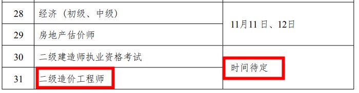 2025年新疆二级造价工程师资格考试时间“另行通知”