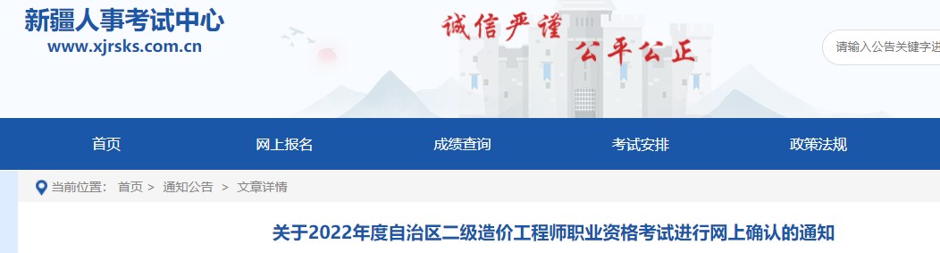 新疆考区2025年度二级造价工程师职业资格考试考务工作公告