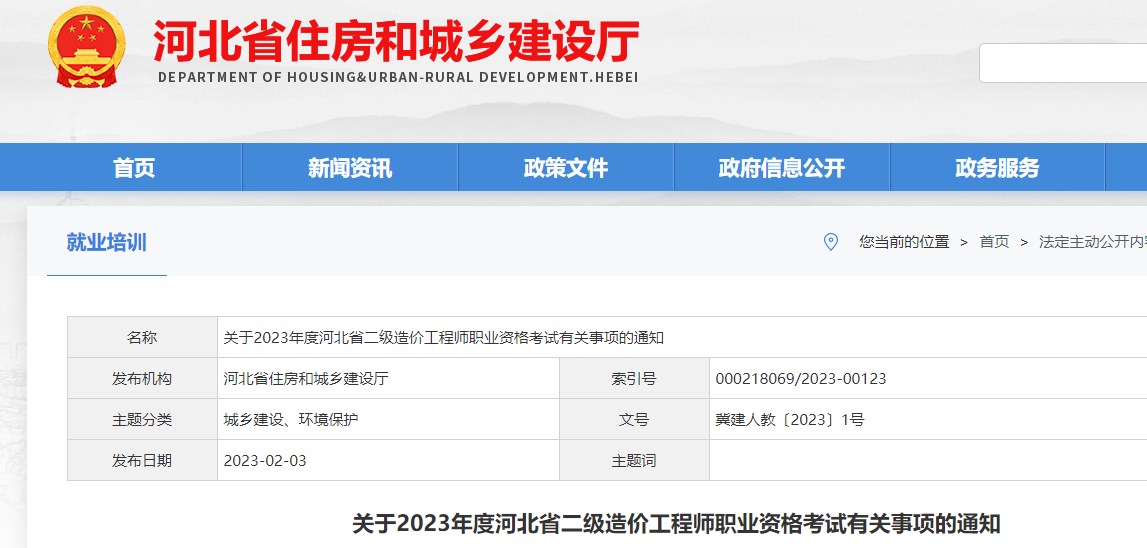 河北考区2026年度二级造价工程师职业资格考试有关事项的通知