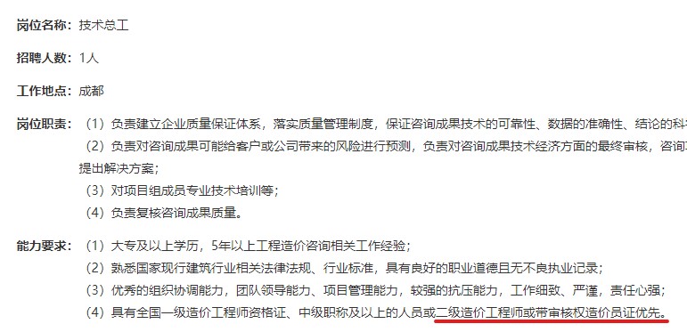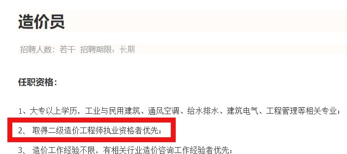 某公司招聘造价工程师,持二级造价师资格证优先考虑