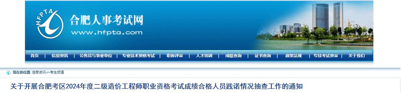 关于开展合肥考区2024年度二级造价工程师职业资格考试成绩合格人员践诺情况抽查工作的通知