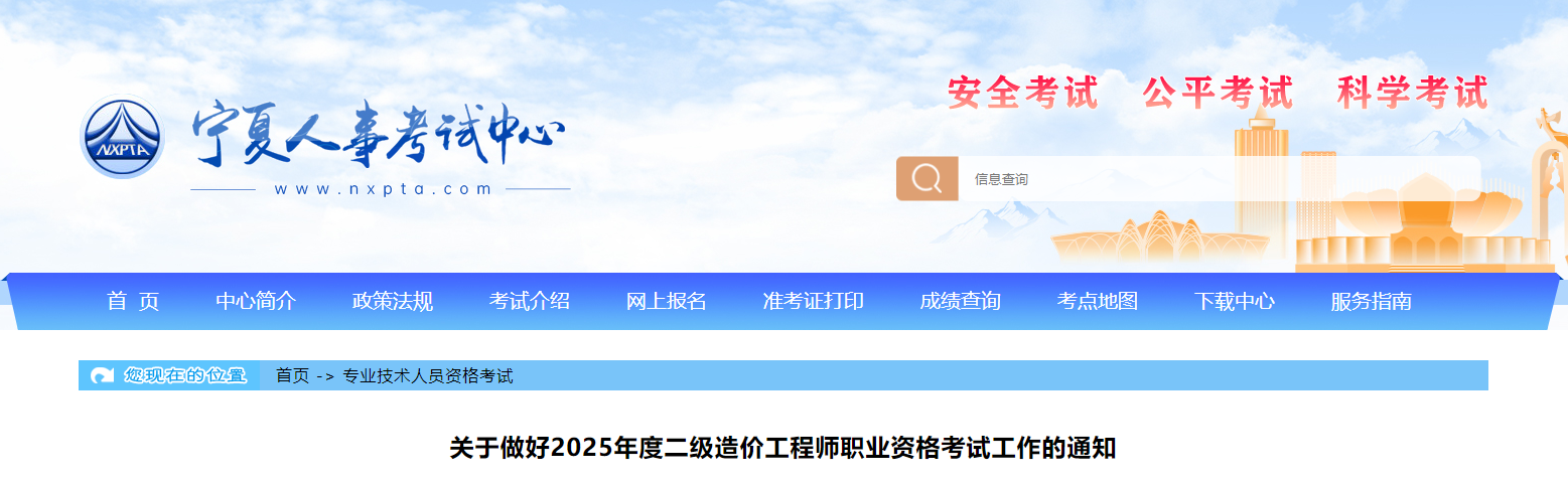 关于做好2025年度宁夏二级造价工程师职业资格考试工作的通知