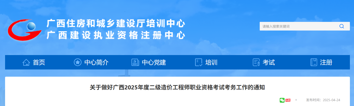 关于广西2025年度二级造价工程师职业资格考试考务工作的通知