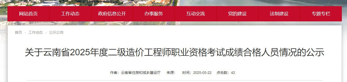 云南省2025年度二级造价工程师职业资格考试成绩合格人员情况的公示