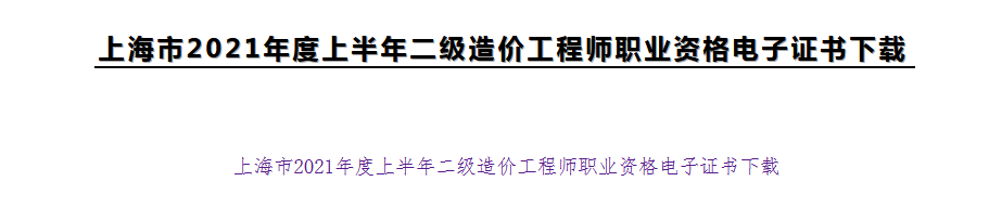 近日上海市职业能力考试院发布上海2021年度二级造价工程师职业资格电子证书下载通知并开通下载入口,上海二造考生可以点击此处进入下载入口>>
