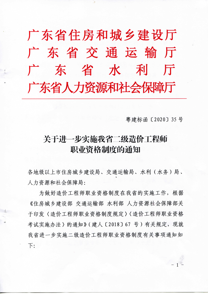 广东省四厅联合印发《关于进一步实施我省二级造价工程师职业资格制度的通知》