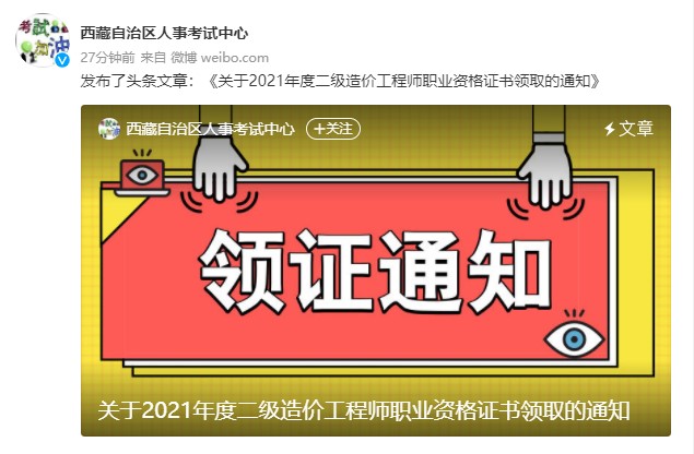 关于2021年度二级造价工程师职业资格证书领取的通知