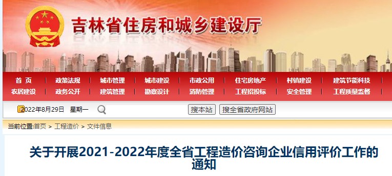 为提高全省建设工程造价咨询企业监管水平,增强工程造价咨询企业诚信意识,构建诚实守信的市场环境,促进造价咨询行业健康发展,依据《吉林省建设工程造价咨询企业信用评价管理规定》,省建设工程造价管理站决定开展2021-2022年度全省工程造价咨询企业信用评价工作,现将有关事项通知如下。