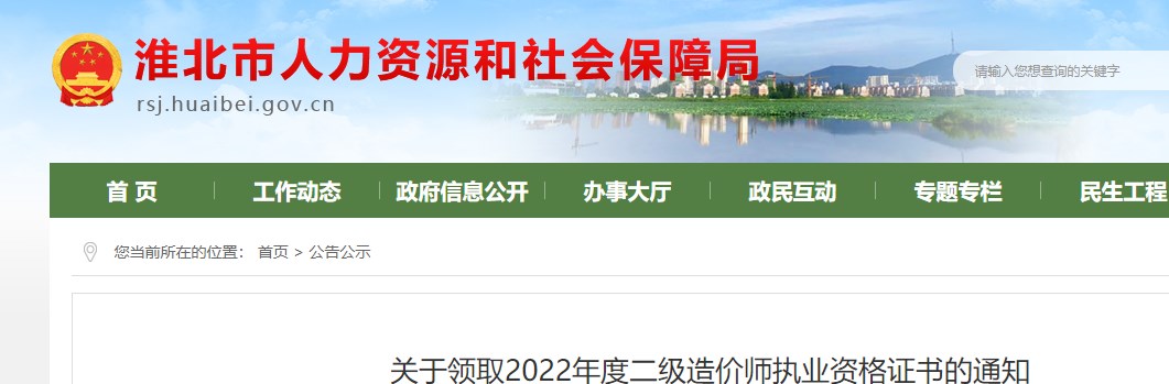 安徽淮北市2022年度二级造价师证书已到,领取通知如下。