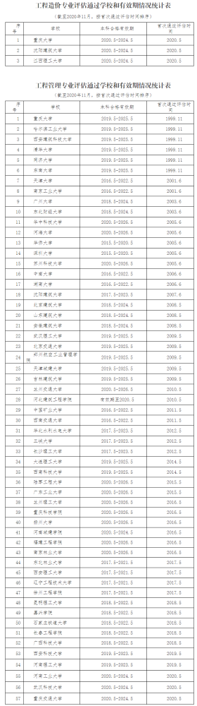2021年工程管理专业评估通过学校和有效期情况汇总表