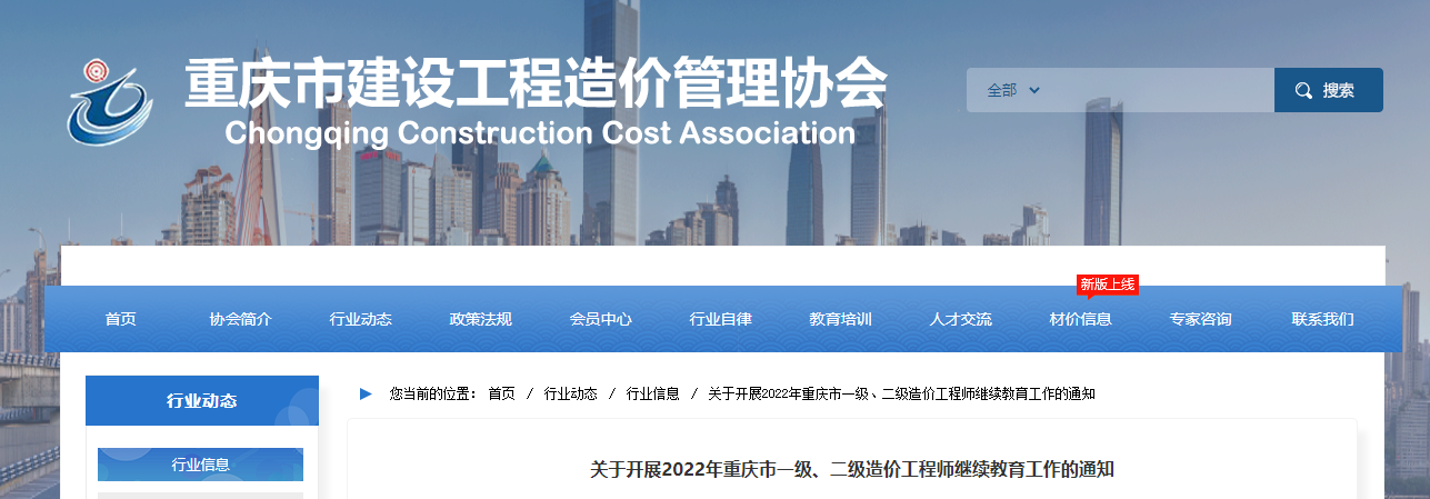 关于开展2022年重庆市二级造价工程师继续教育工作的通知