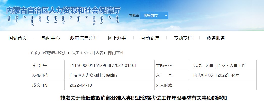 内蒙古人社厅转发关于降低二级造价工程师考试工作年限要求有关事项通知