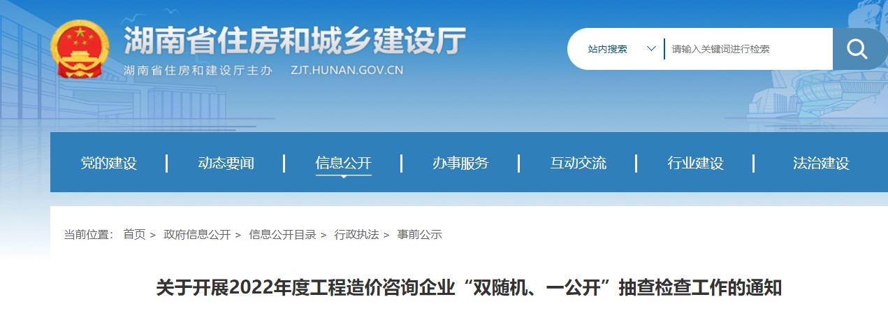 湖南开展2022年度工程造价咨询企业“双随机、一公开”抽查检查工作