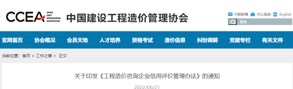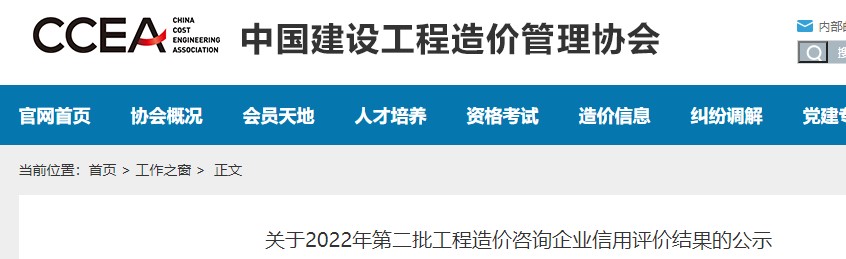 中国建设工程协会关于2022年第二批工程造价咨询企业信用评价结果公示