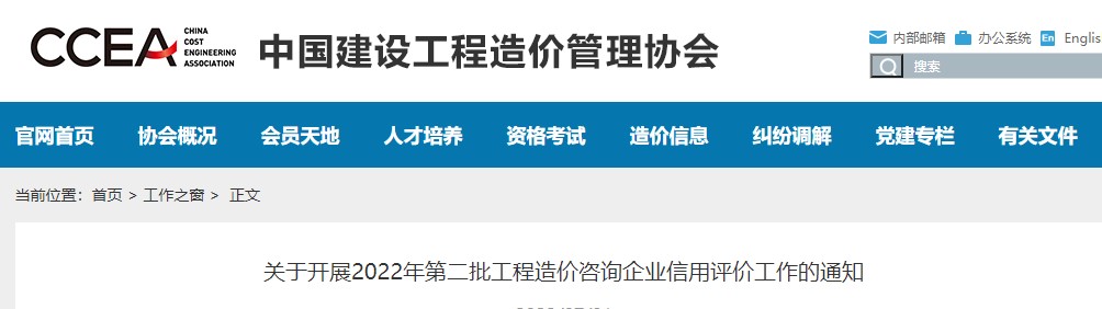 关于开展2022年第二批工程造价咨询企业信用评价工作的通知