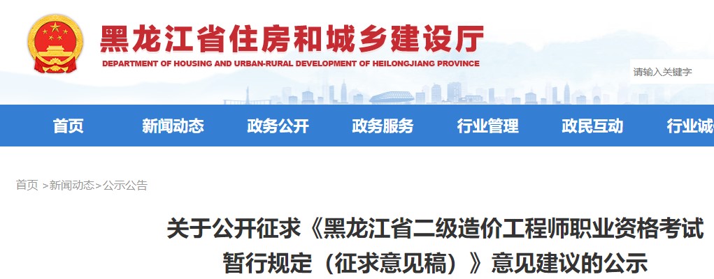 征求《黑龙江省二级造价工程师职业资格考试暂行规定征求意见稿》意见