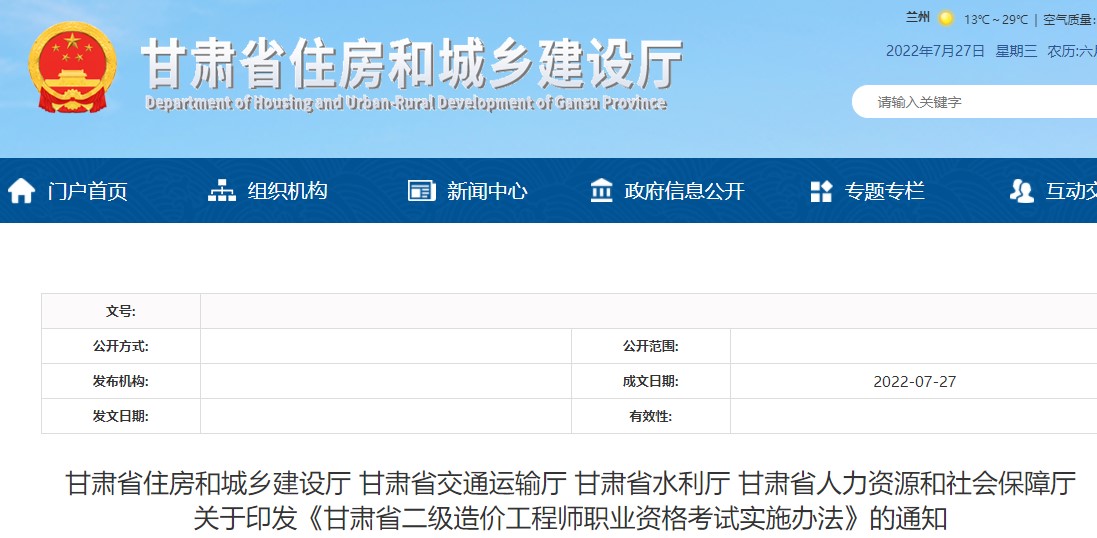 《甘肃省二级造价工程师职业资格考试实施办法(征求意见稿)》征求意见