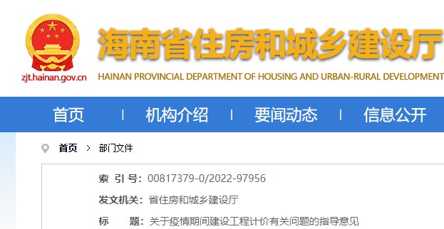 海南省关于疫情期间建设工程计价有关问题的指导意见