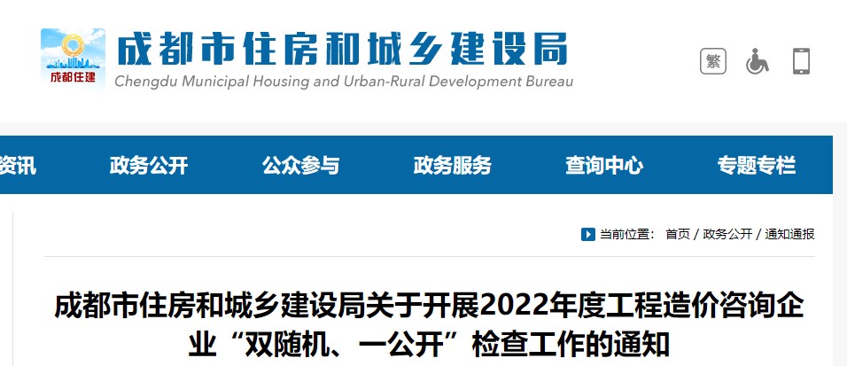 成都关于开展2022年度工程造价咨询企业双随机、一公开检查工作的通知