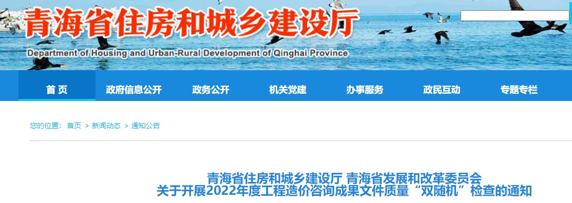 青海关于开展2022年度工程造价咨询成果文件质量“双随机”检查通知