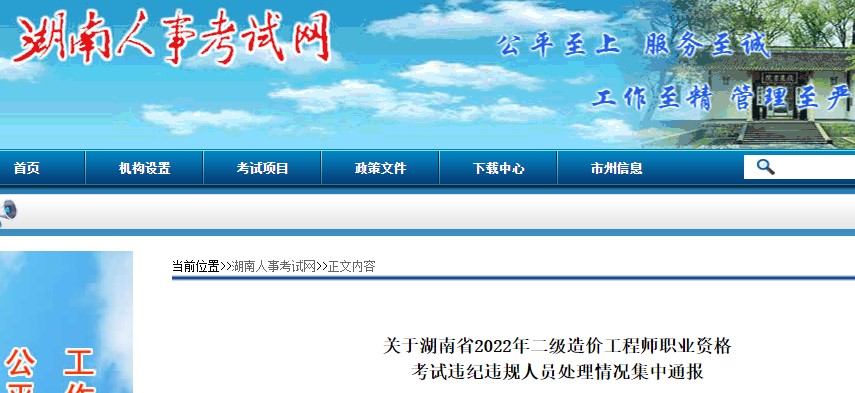 关于湖南省2022年二级造价工程师考试违纪违规人员处理情况集中通报