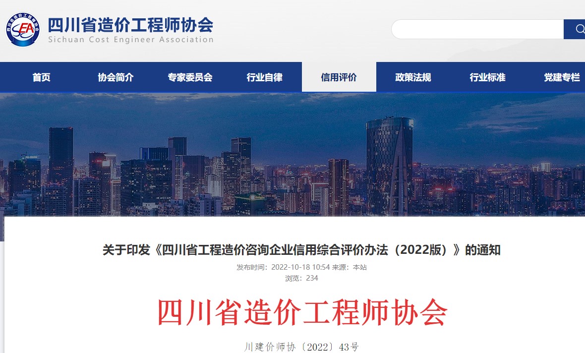 关于印发《四川省工程造价咨询企业信用综合评价办法(2022版)》通知