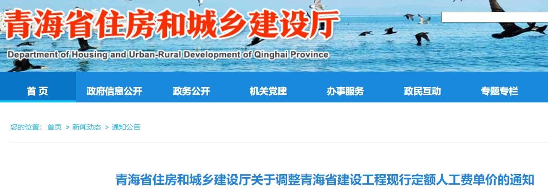 青海省住建厅关于调整青海省建设工程现行定额人工费单价的通知