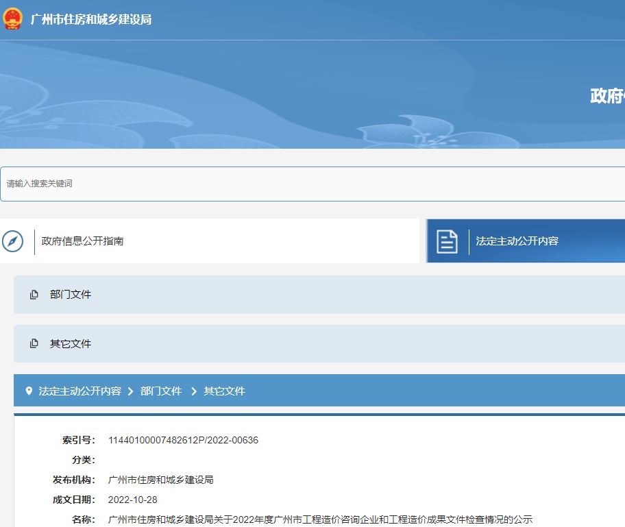 关于2022年度广州工程造价咨询企业和工程造价成果文件检查情况的公示