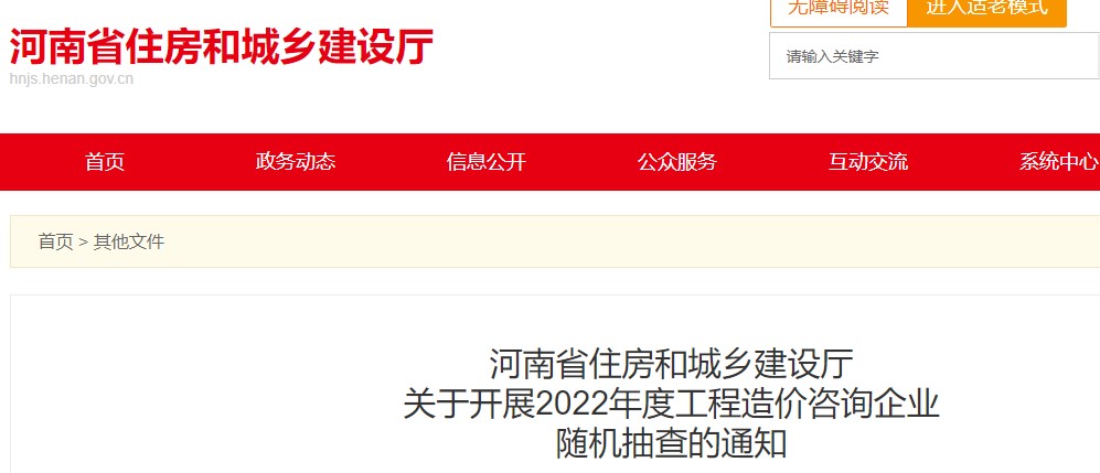 河南住建厅关于开展2022年度工程造价咨询企业随机抽查的通知