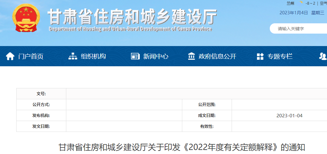 甘肃省住建厅关于印发《2022年度有关定额解释》的通知