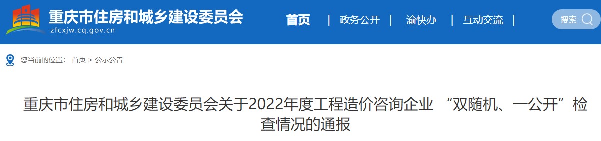 重庆关于2022年度工程造价咨询企业“双随机、一公开”检查情况的通报