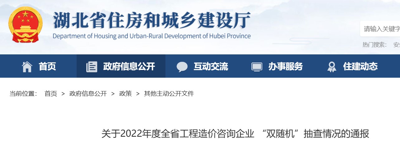 湖北生关于2022年工程造价咨询企业”双随机“抽查情况的通报