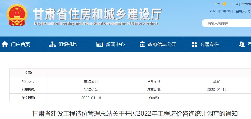 甘肃建设工程造价管理总站关于开展2022年工程造价咨询统计调查的通知