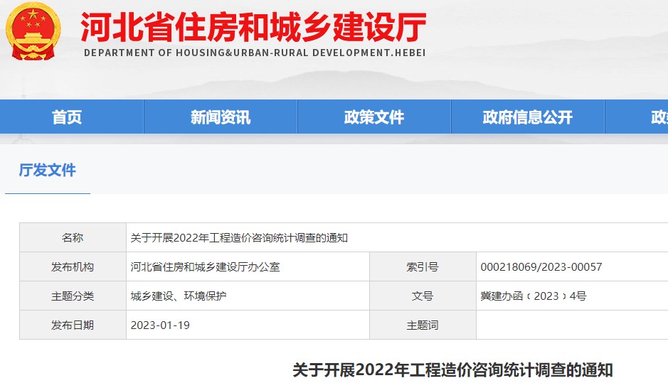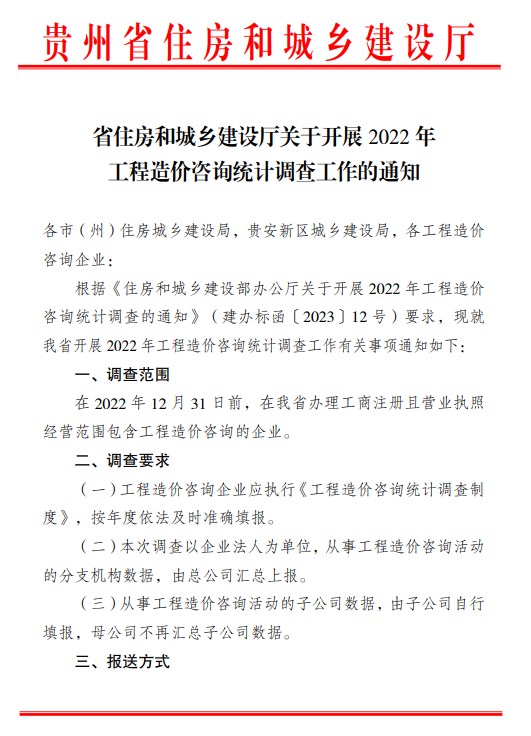 河南住建厅关于开展2022年工程造价咨询统计调查的通知
