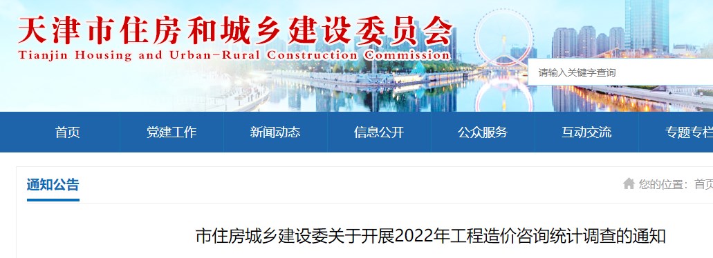 天津市住建委关于开展2022年工程造价咨询统计调查的通知
