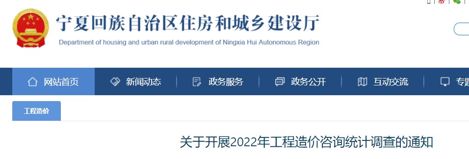 宁夏自治区关于开展2022年工程造价咨询统计调查的通知