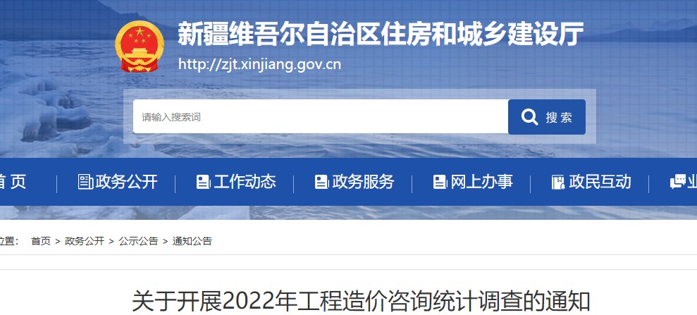 新疆省关于开展2022年工程造价咨询统计调查的通知