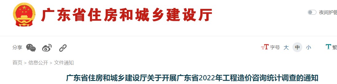 广东省关于开展2022年工程造价咨询统计调查的通知