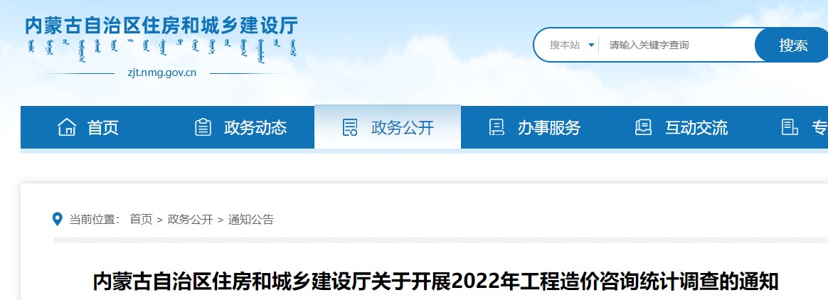 内蒙古住建厅关于开展2022年工程造价咨询统计调查的通知