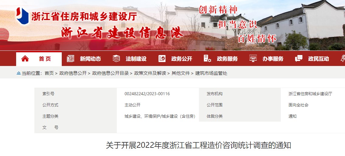 浙江省关于开展2022年度工程造价咨询统计调查的通知