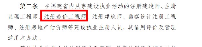 关于印发《福建省建设执业注册人员信用评价办法》的通知,涉及二级造价师