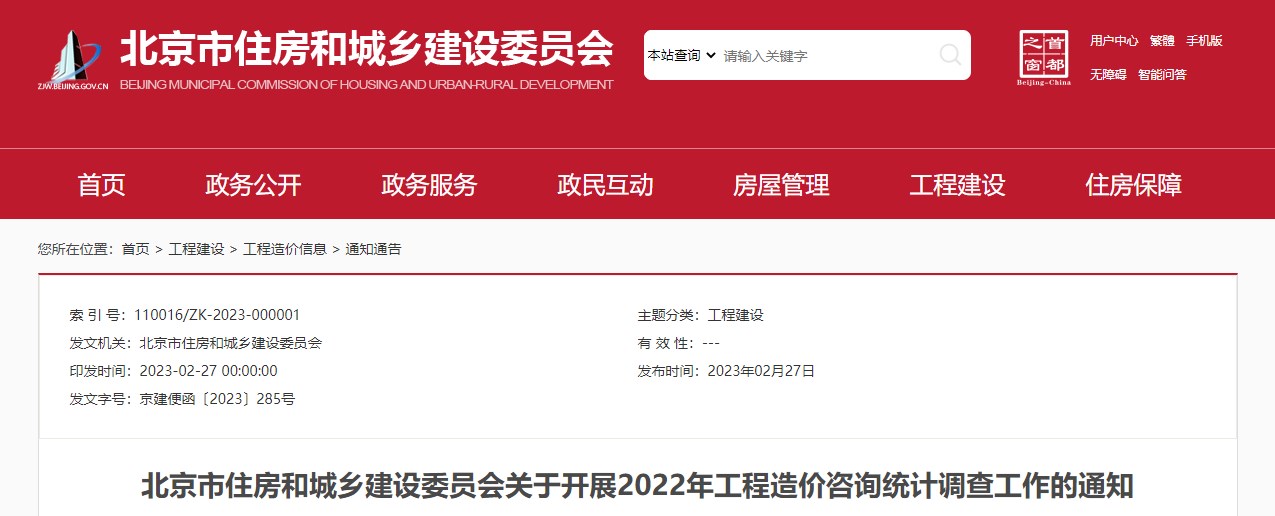 北京市关于开展2022年工程造价咨询统计调查工作的通知