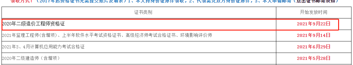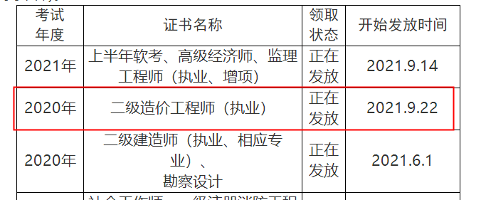 2021年湖南长沙二级造价师考试证书已开始发放,考生自行领取