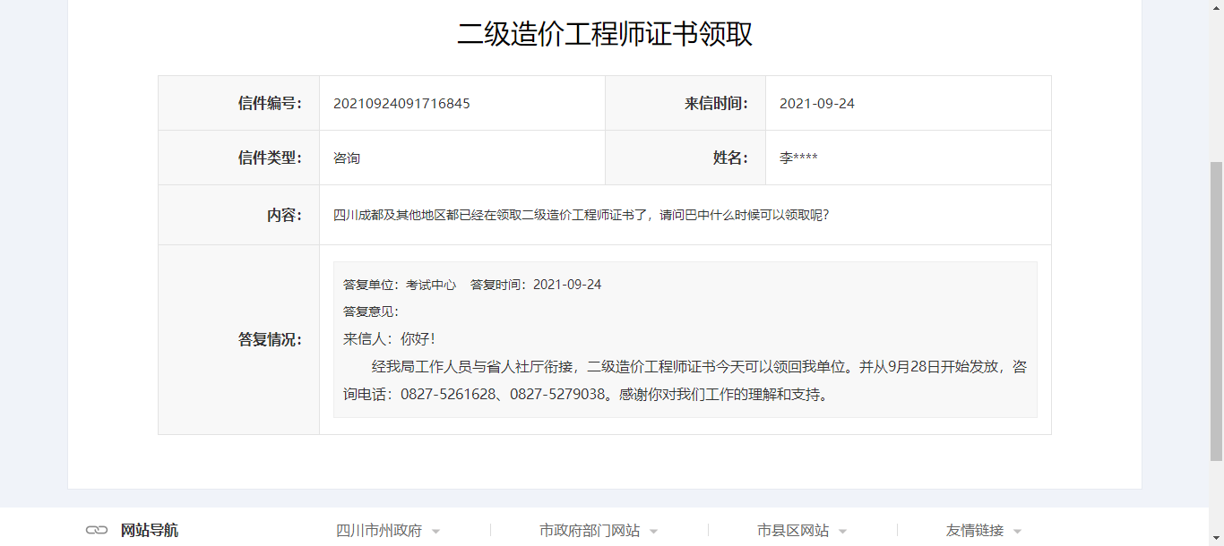 四川省直属考区发布二级造价师证书邮寄领取的通知