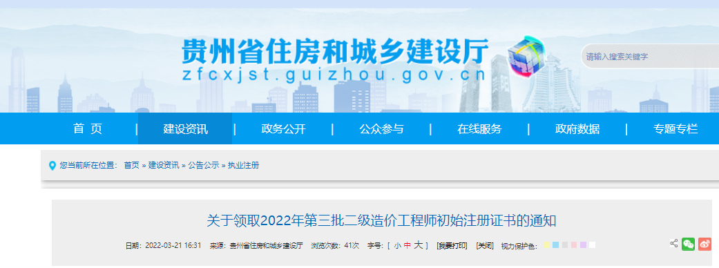 贵州关于领取2022年第三批二级造价工程师初始注册证书的通知