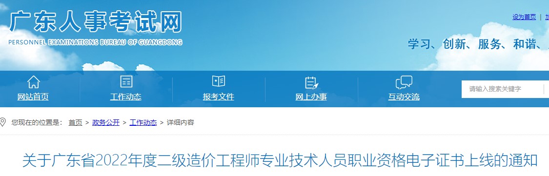关于广东省2022年度二级造价工程师职业资格电子证书上线的通知