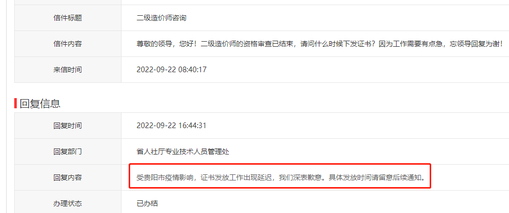 贵州省2022年二级造价师考试证书发放延迟,具体时间可留意后续通知