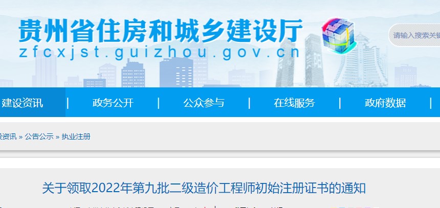 贵州省关于领取2022年第九批二级造价工程师初始注册证书的通知